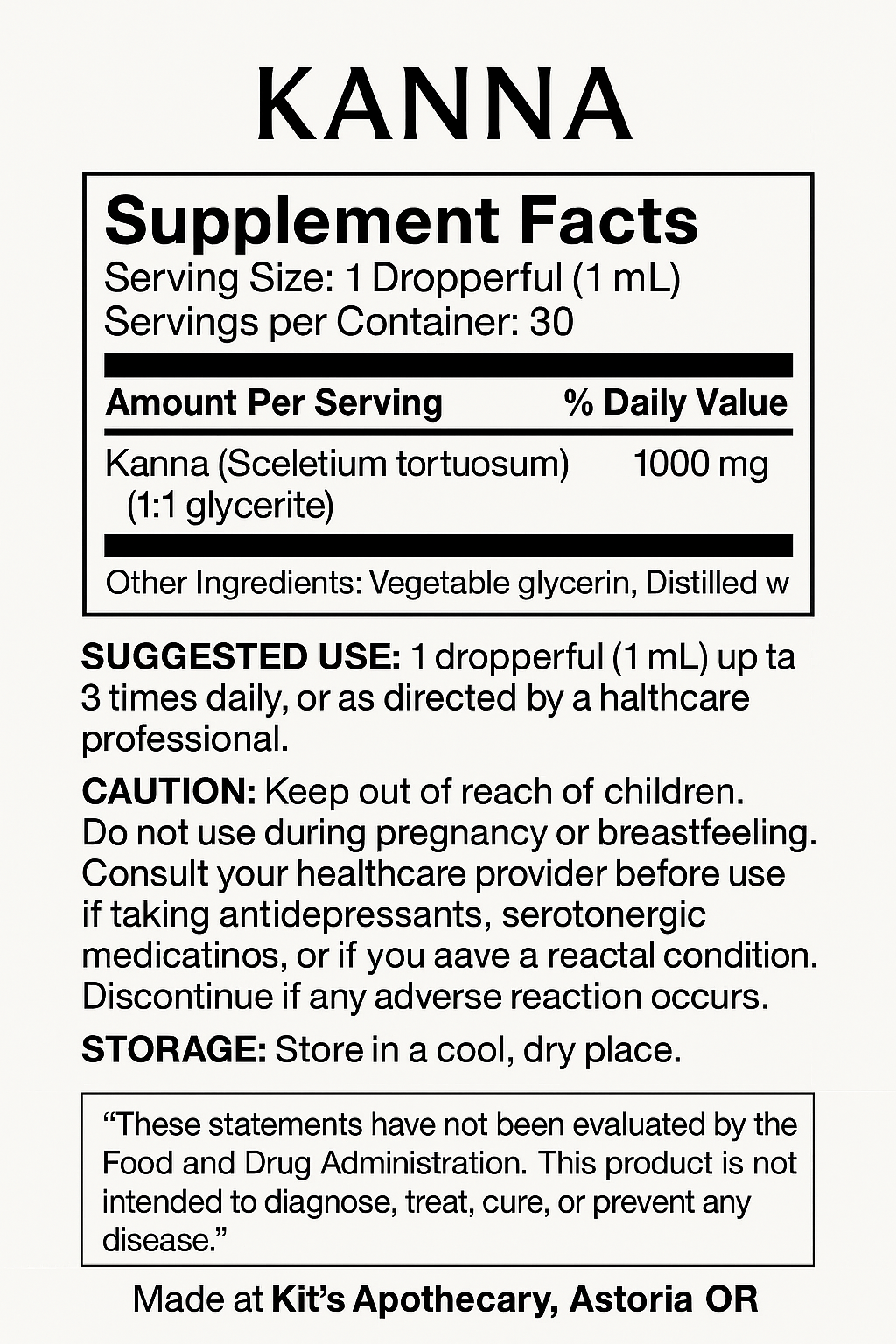 Kanna (Sceletium tortuosum) is a traditional South African plant valued for promoting a calm, centered mood. Our glycerite is smooth and alcohol-free.