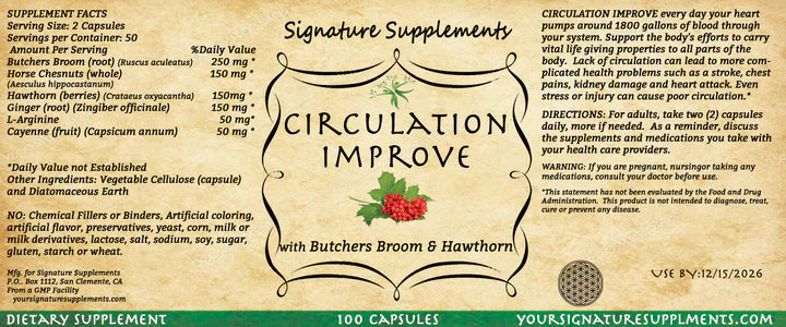 Your heart works hard—pumping over 1,800 gallons of blood a day to deliver oxygen and nutrients throughout your body. Circulation Improve is formulated to support that vital effort by promoting healthy blood flow, relaxing blood vessels, and helping to manage cholesterol and triglyceride levels.
