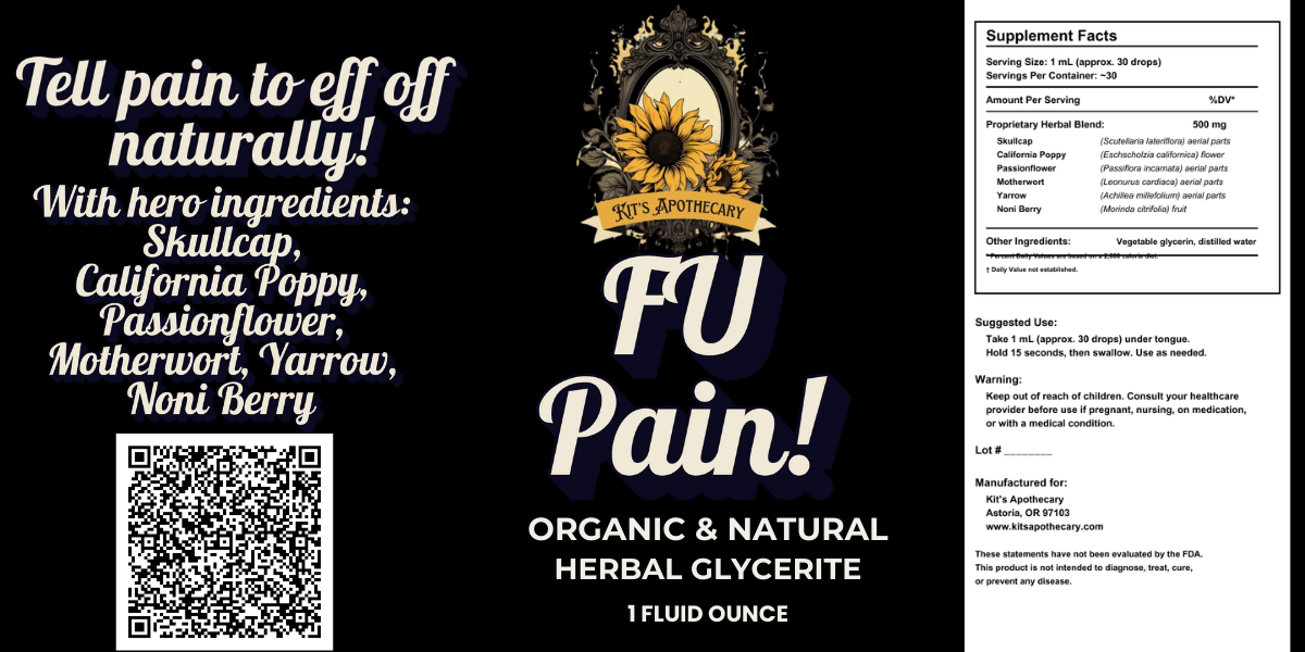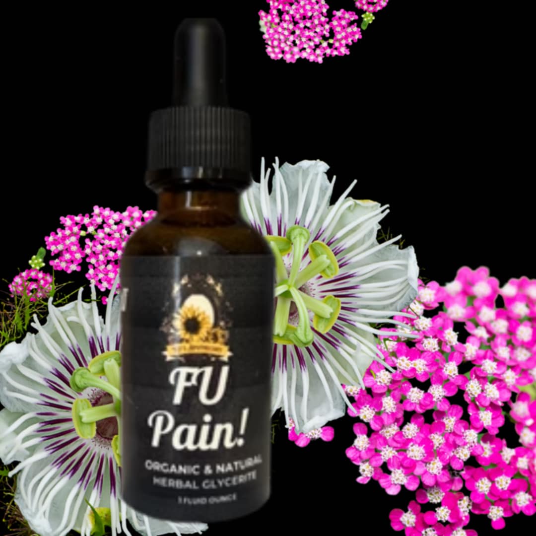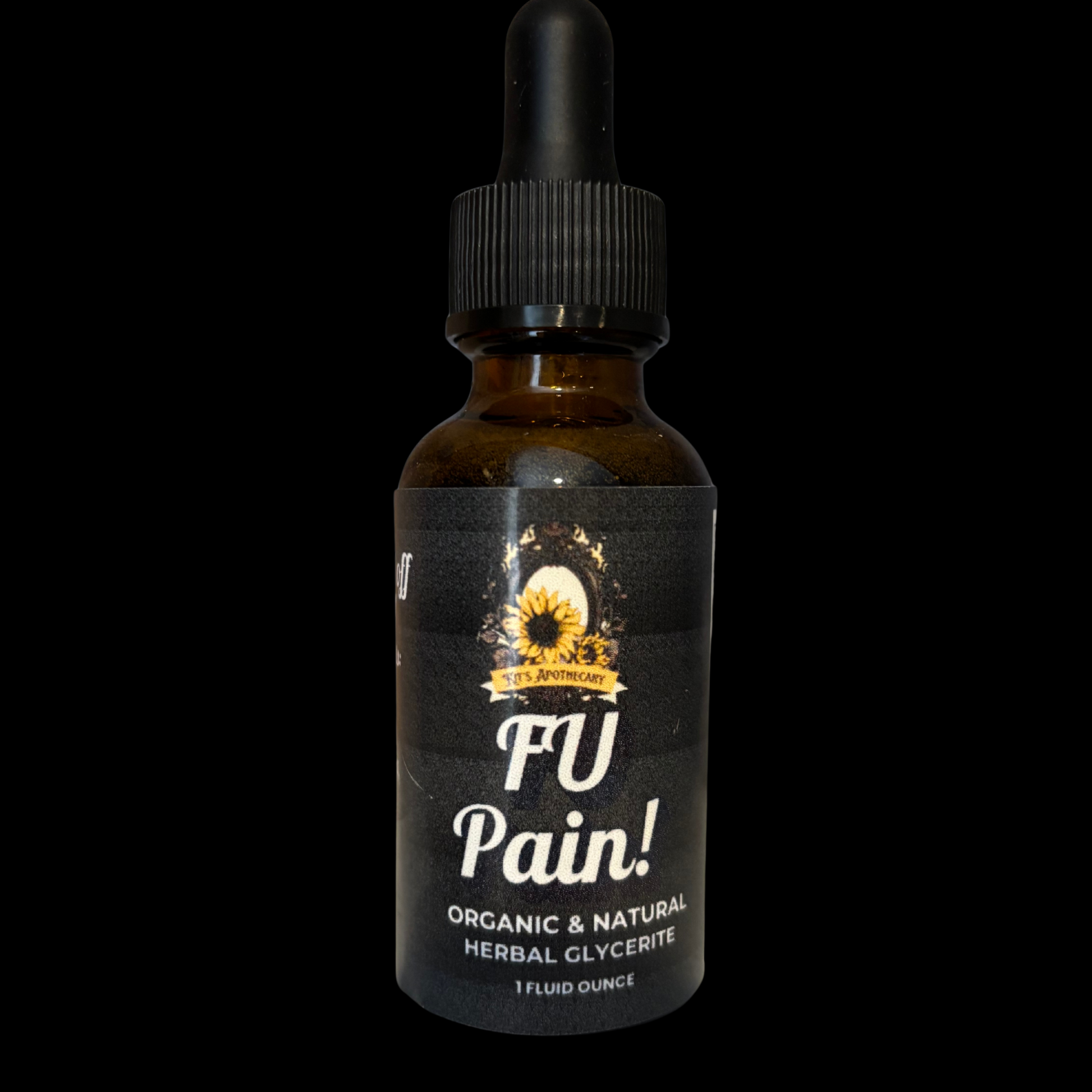 When tension talks back, tell it to hush. FU Pain! Tincture uses calm-first nervines and time-loved botanicals to support comfort and release. Designed for sublingual absorption so you can feel it fast | pleasant enough to dilute if you prefer.